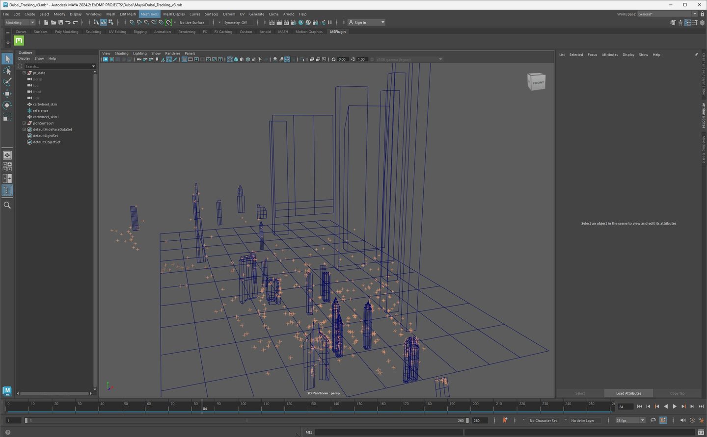 Customizing 3D Layouts: Rather than sticking to the default setup, I altered the Maya geometry to create a more dynamic skyline. This required ensuring the new 3D volumes remained perfectly aligned with the provided tracking data to prevent any parallax errors.